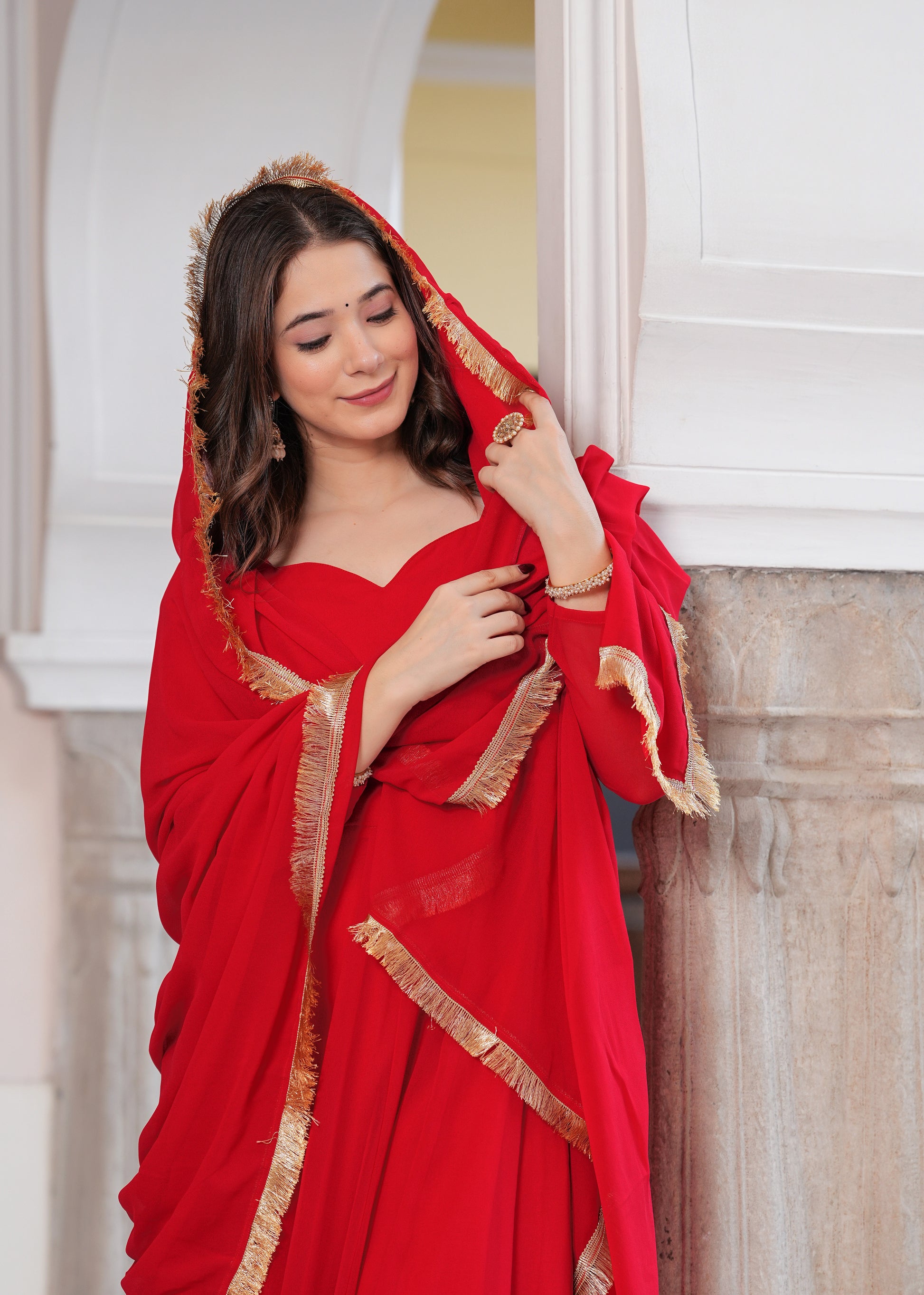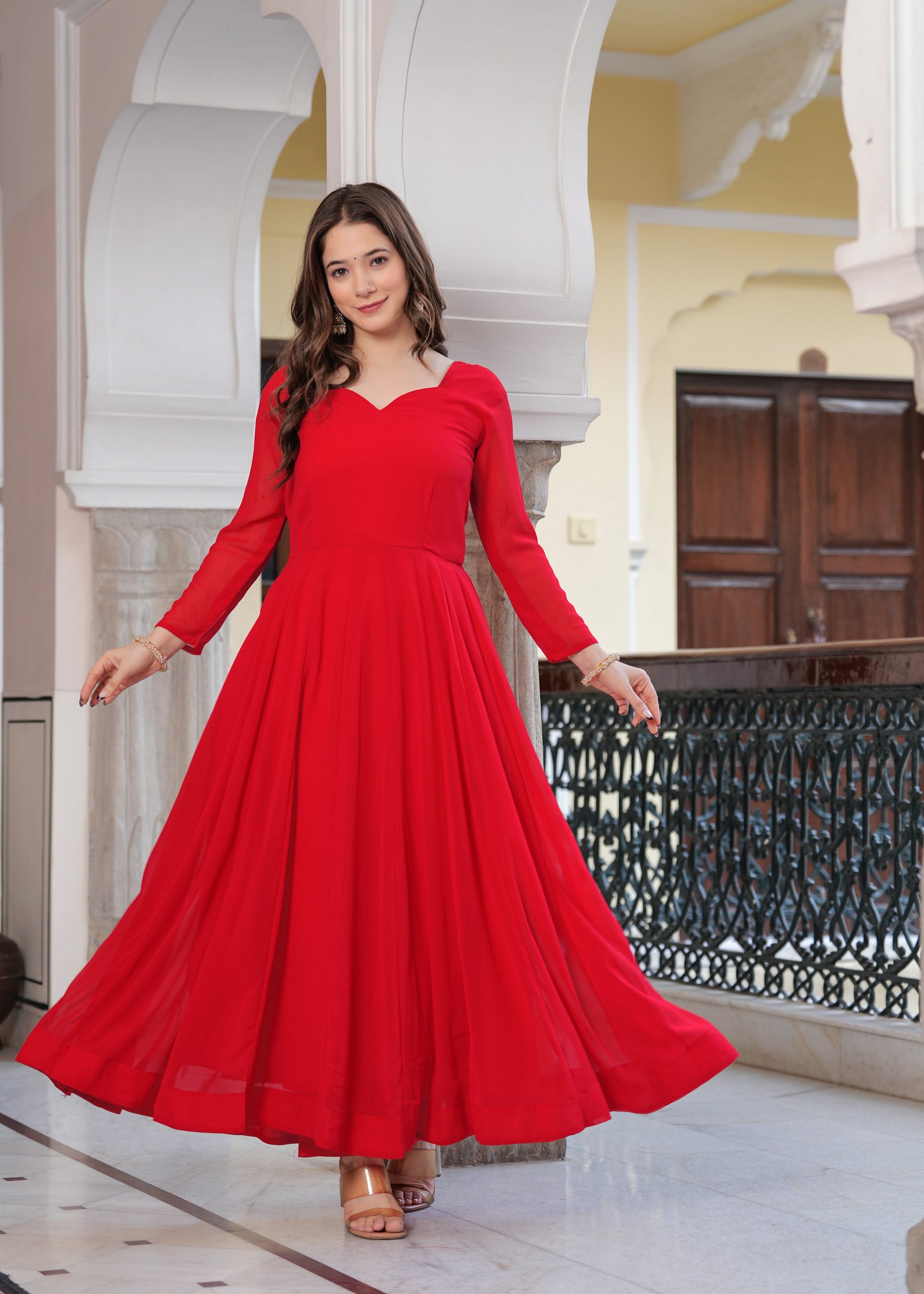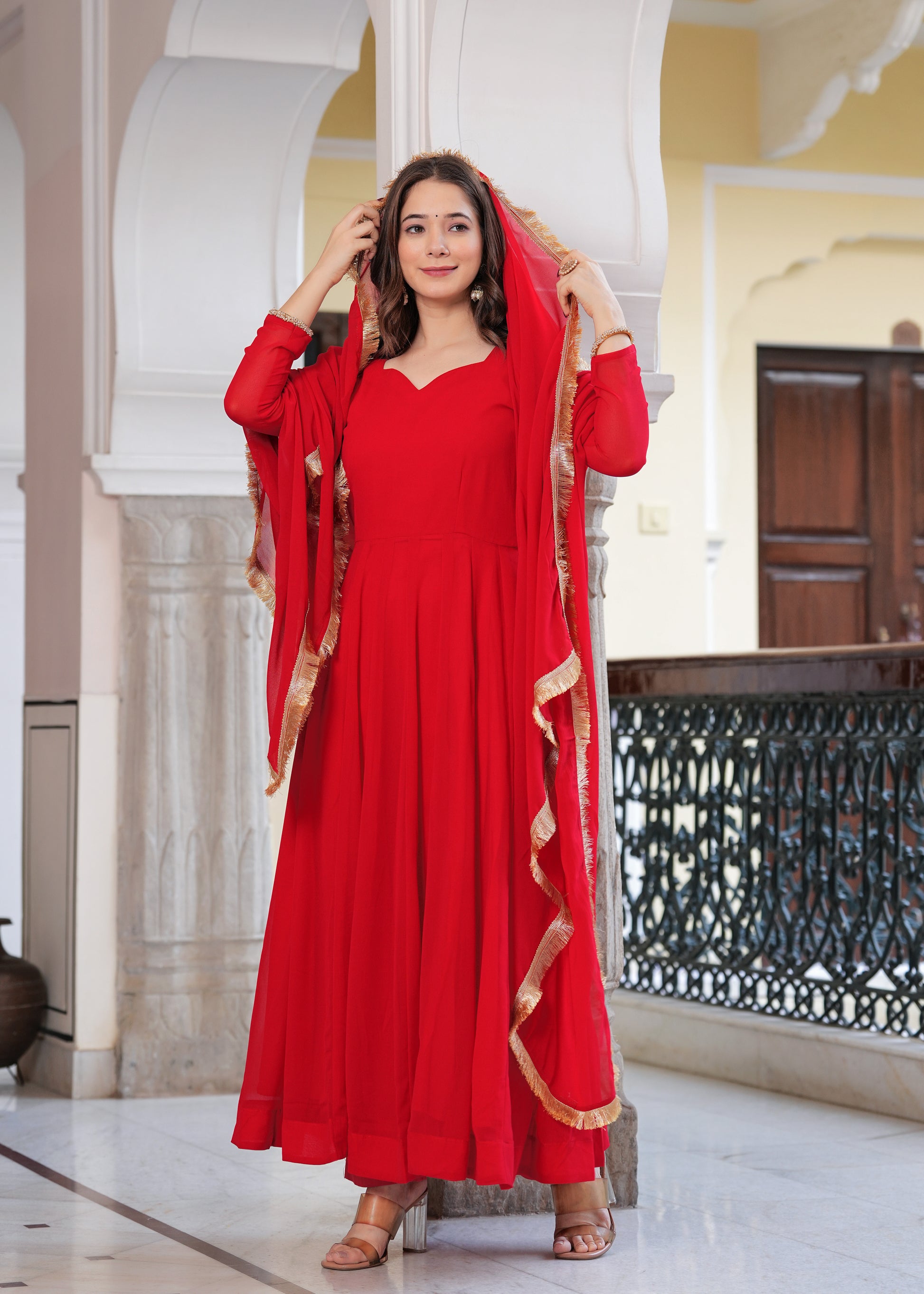 Georgette Anarkali Kurta with Pant and Dupatta Set