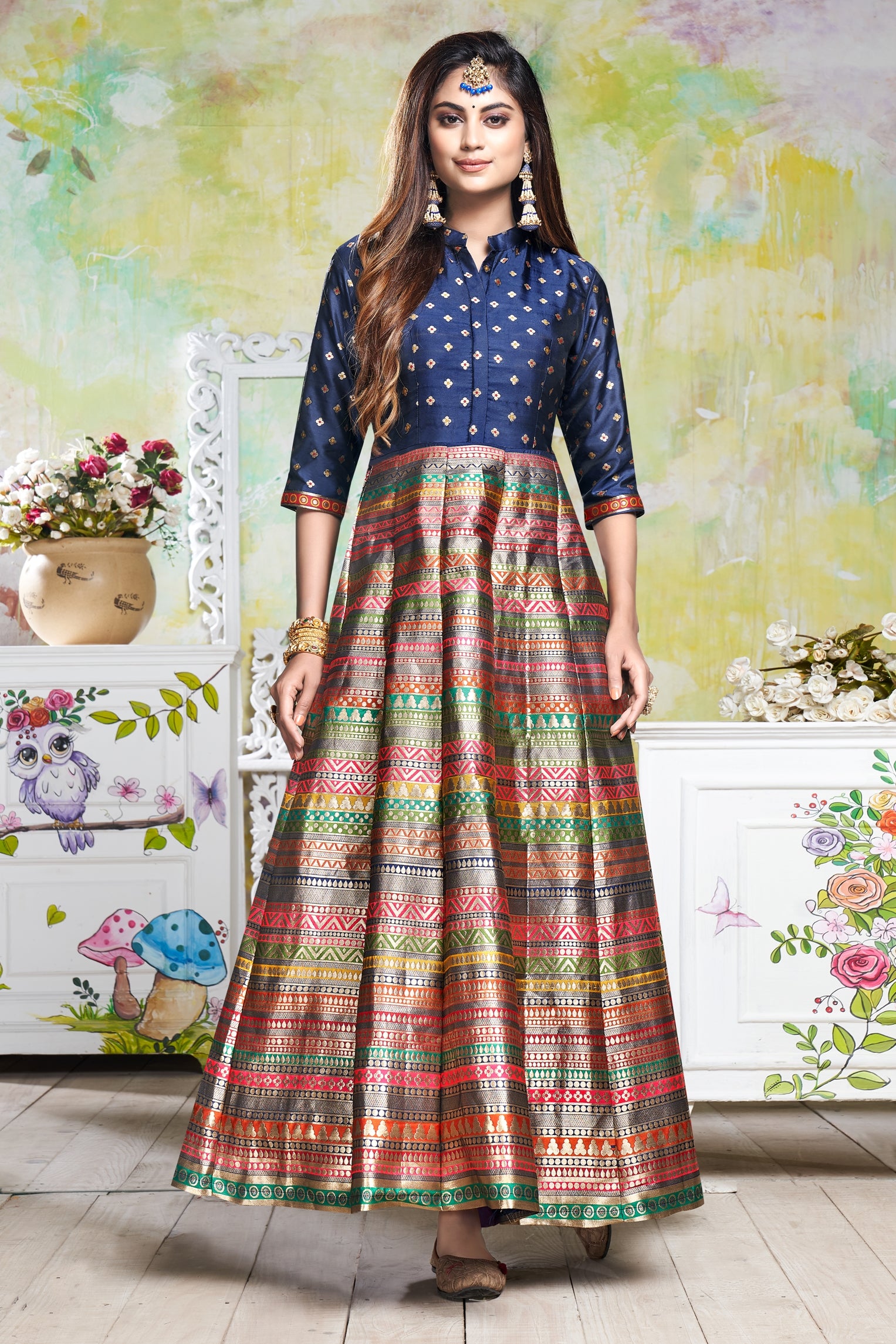 Vaani Creation Semi Stitched Jacquard Silk Gown (Free Size)