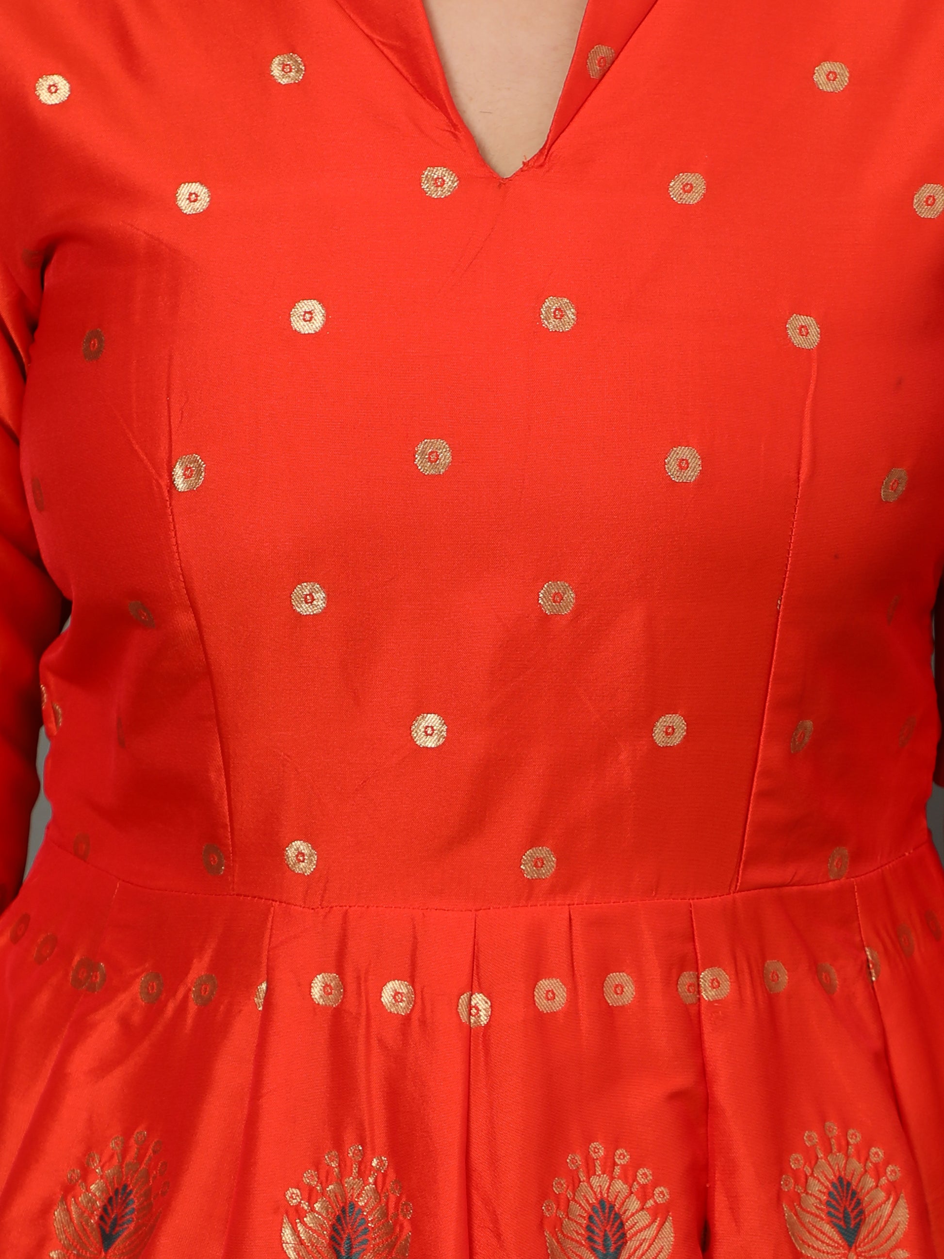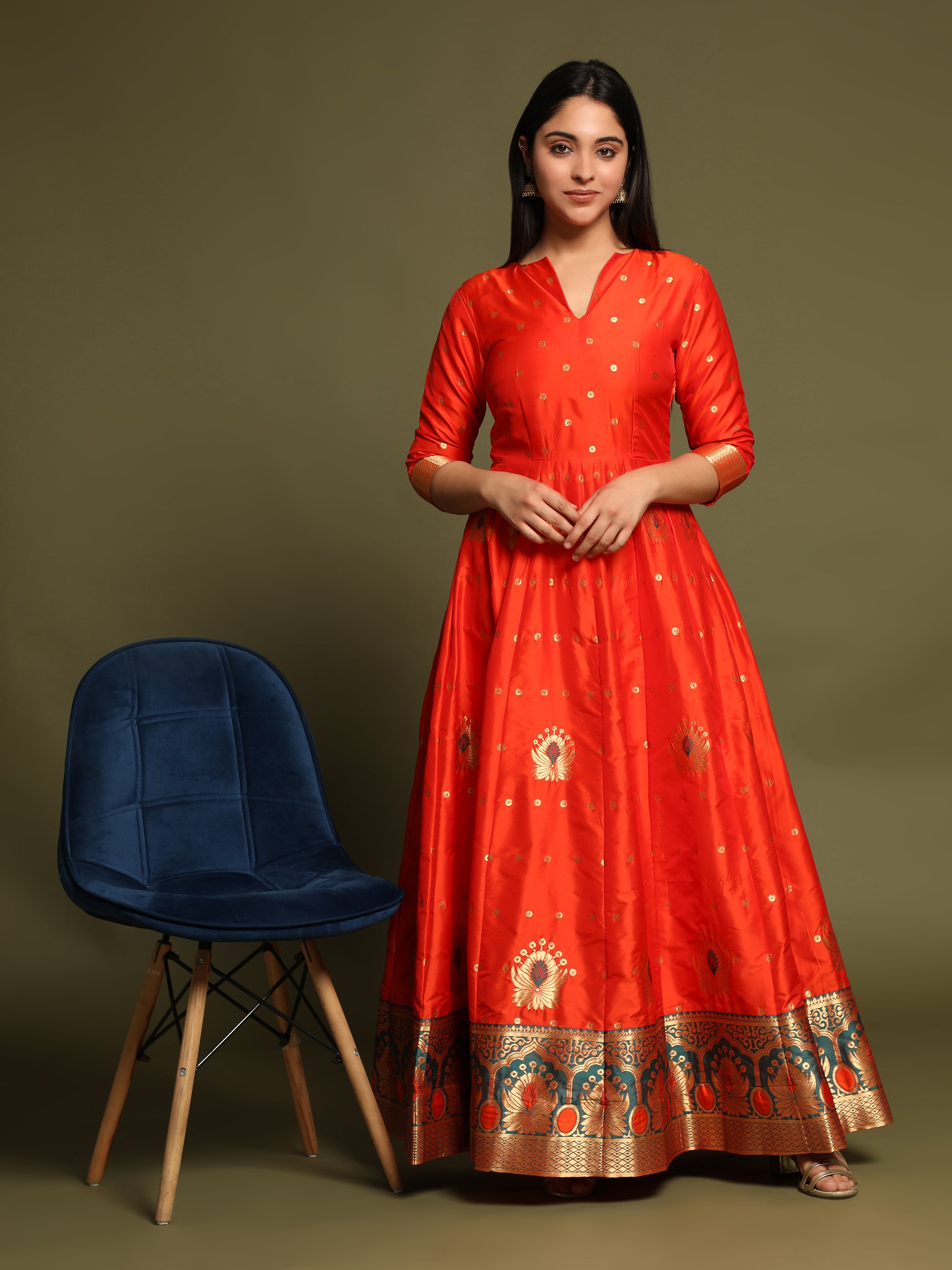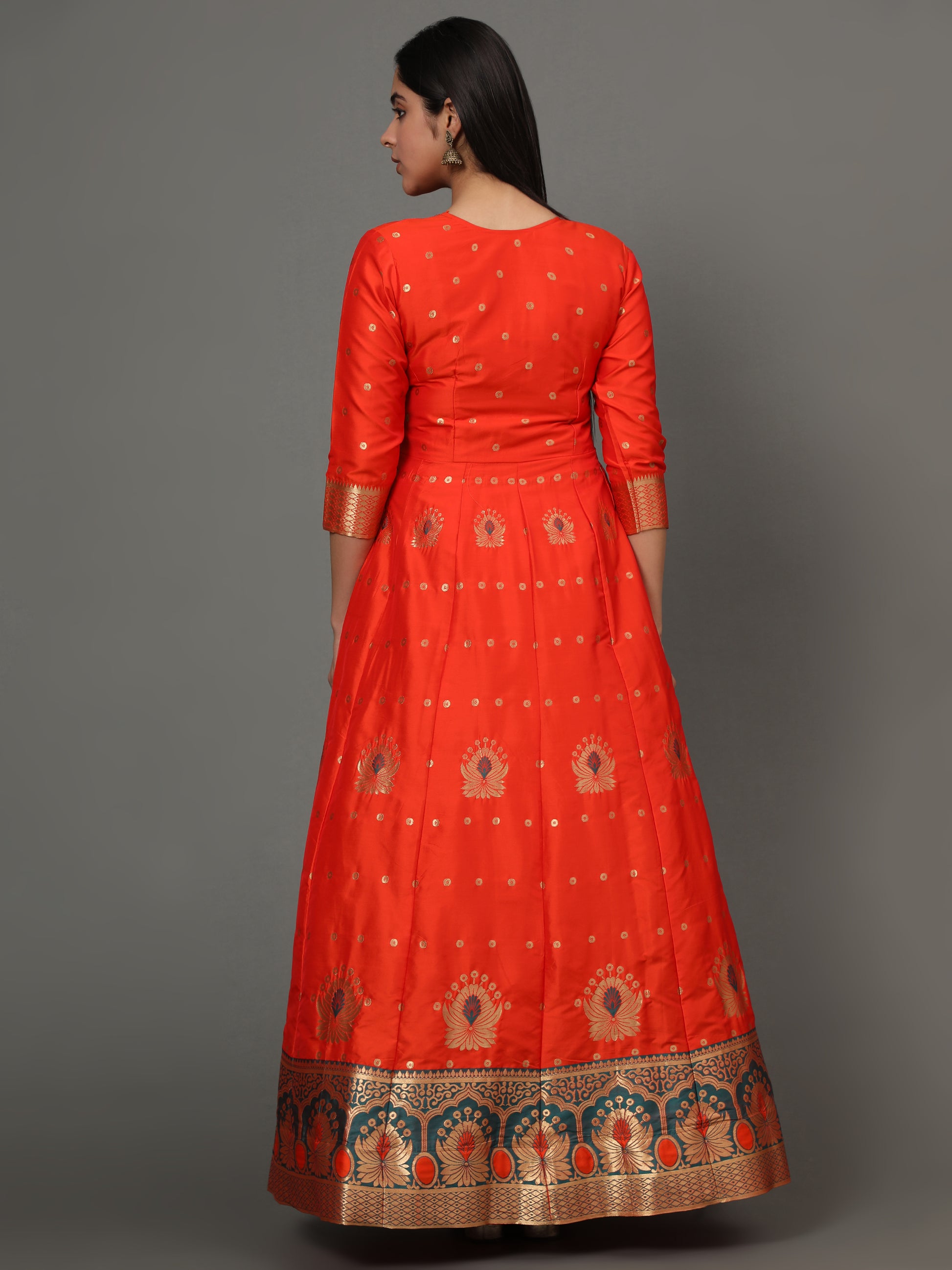 Vaani Creation Semi Stitched Jacquard Silk Gown (Free Size)