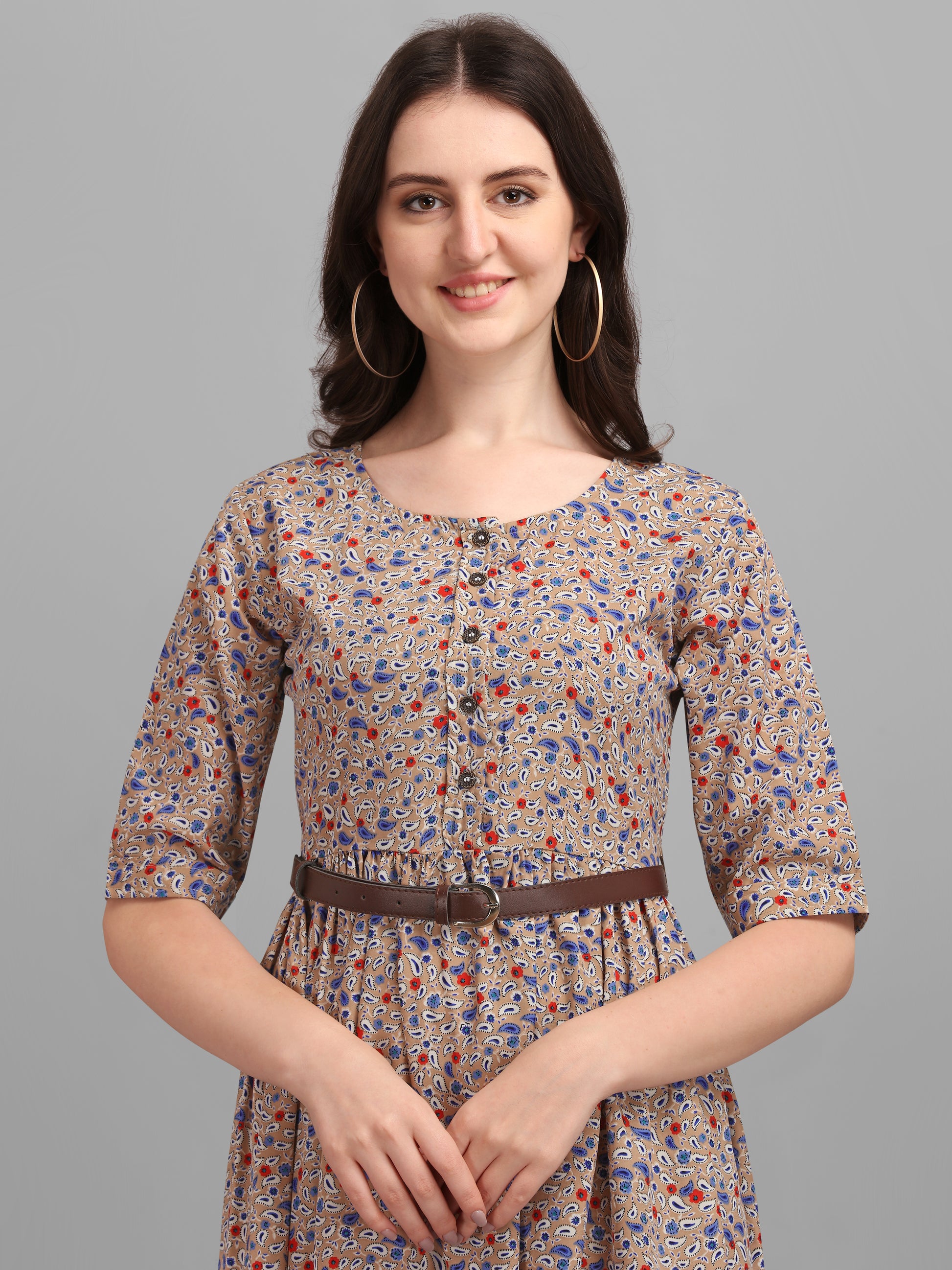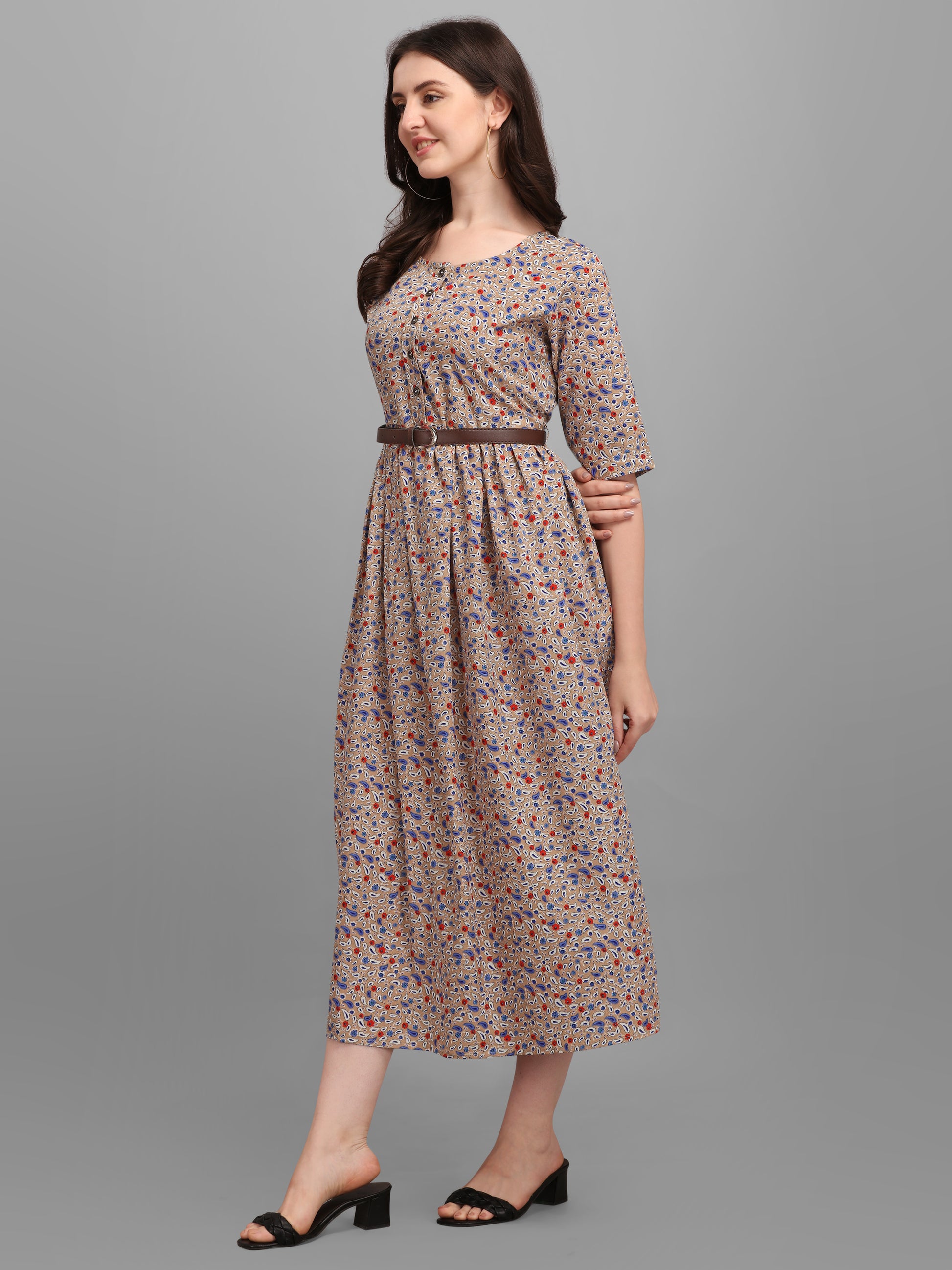 Vaani Creation Women's Floral Printed Midi Dress with Belt