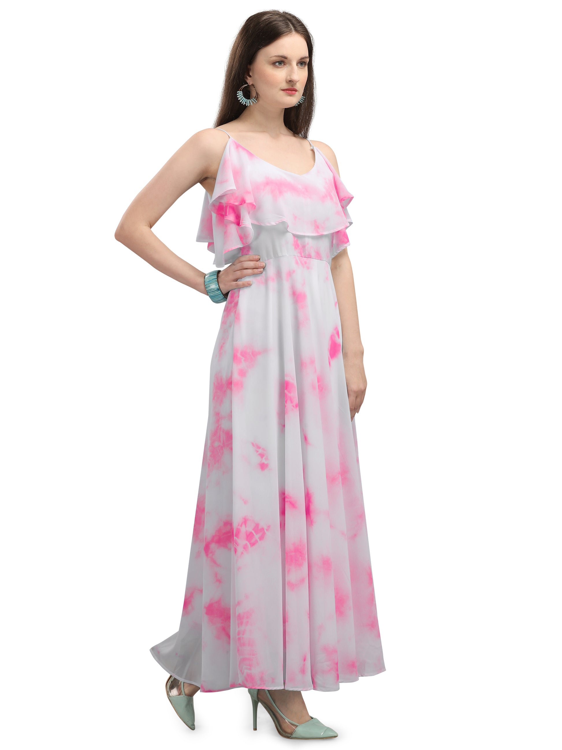 Vaani Creation Women's Maxi Tie and Dye Pleated Dress