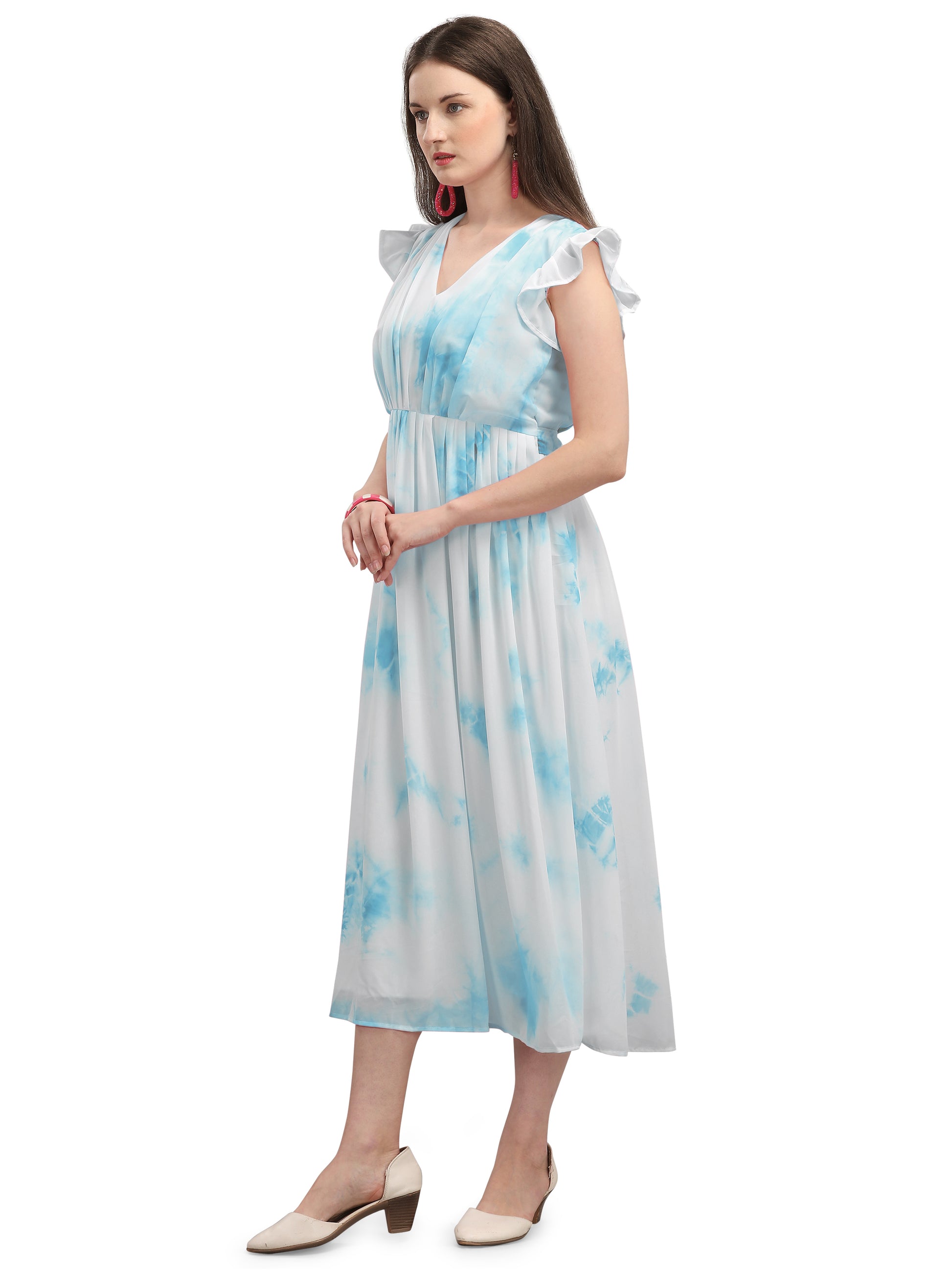 Vaani Creation Women's Midi Tie and Dye Pleated Dress