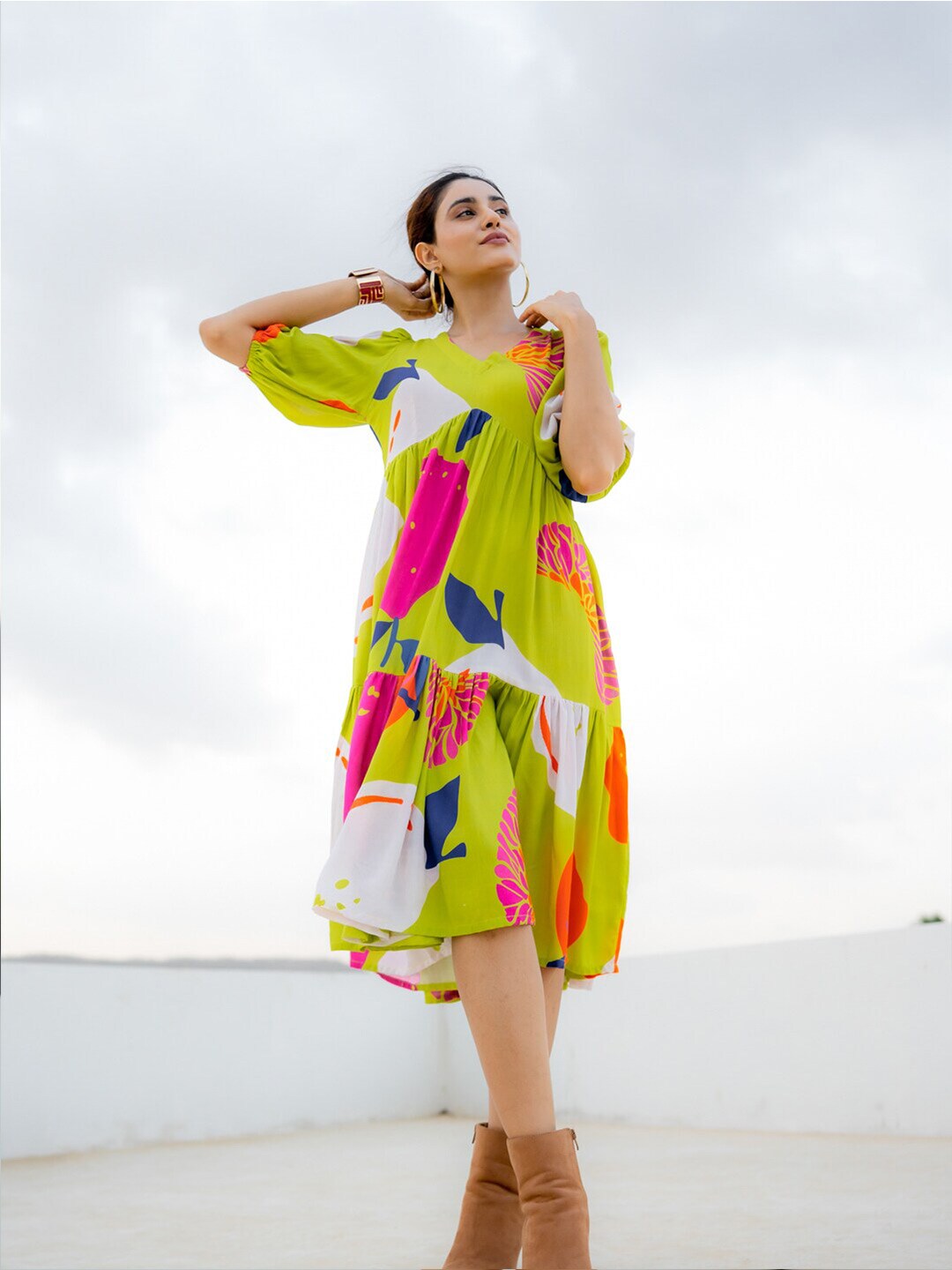 Women Floral Print Fit & Flared Dress